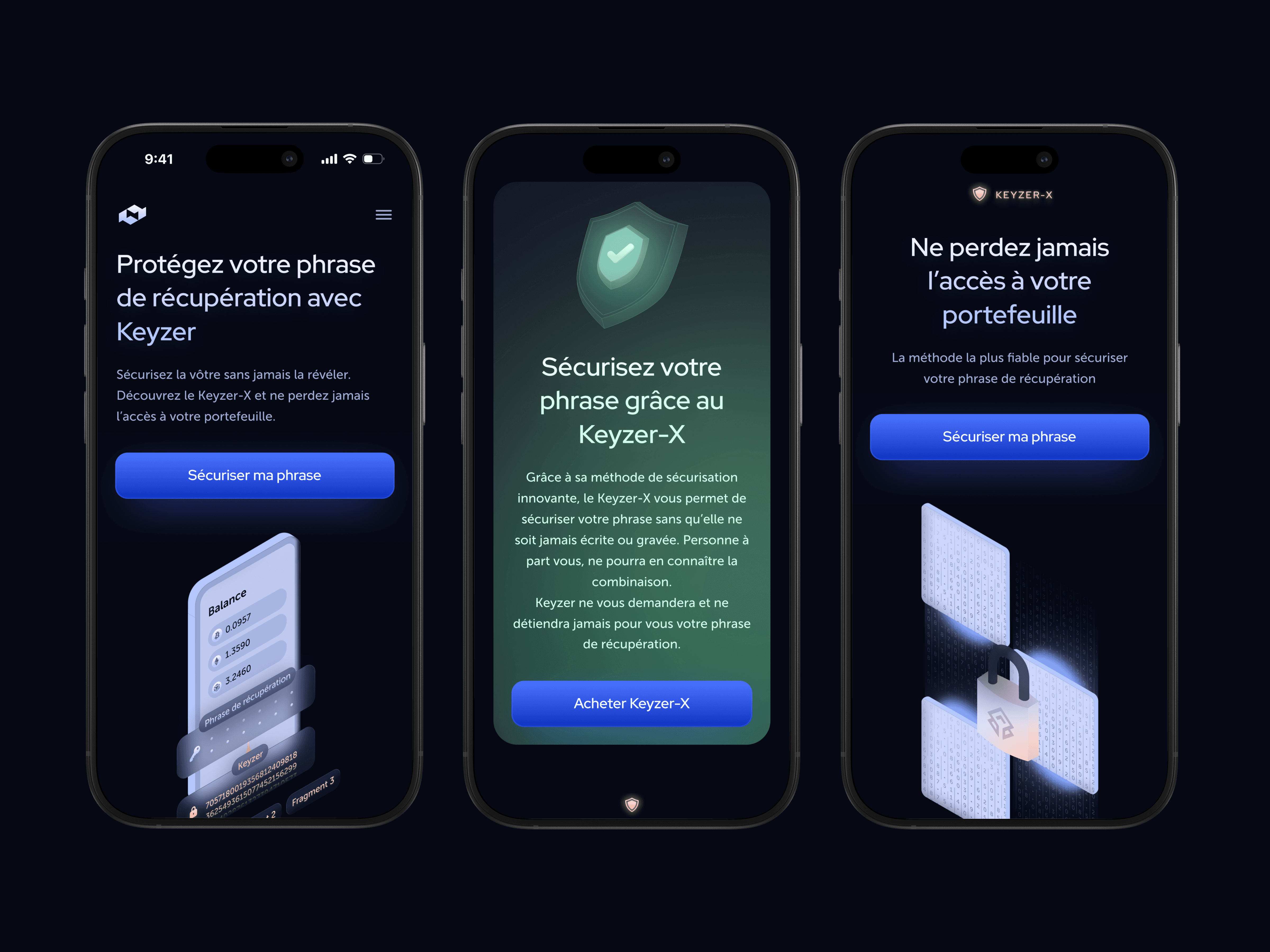 Keyzer provides an extremely secure way to protect your cryptocurrency recovery phrase. It encrypts it offline, using an analog method and splitting it into 3 unique fragments—each useless on its own. This approach ensures your phrase is never digitally stored or fully visible anywhere, making it virtually immune to hacking, theft, or accidental loss.